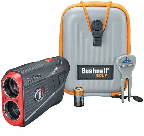 Bushnell Tour V5 Shift Golf Rangefinder Patriot Packs are designed with tour-trusted distance precision and a BITE magnetic cart mount that makes attaching the Tour V5 right on a cart bar easy.