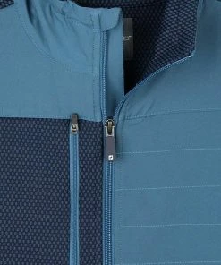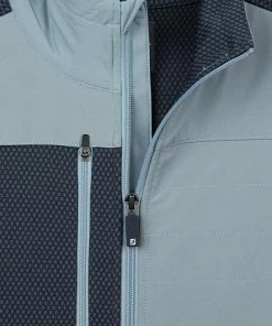 FootJoy ThermoSeries Hybrid Full-Zip Golf Jackets feature brushed back Jacquard Knit fabric with lightweight, quilted front panels, and a right-chest zipper pocket for the ultimate, comfortable, fit.