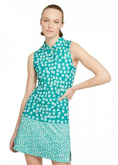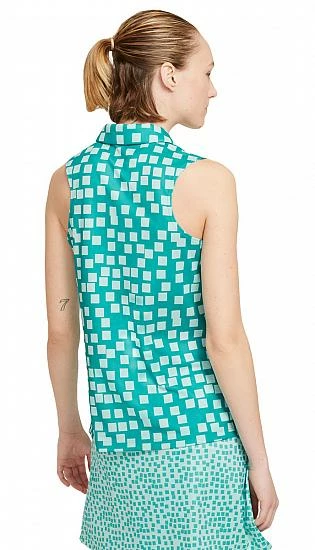 Nike Women’s Dri-FIT Grid Print Sleeveless Golf Shirts are constructed with 100% Reycled Polyester, a 3-button placket, and a grid print.