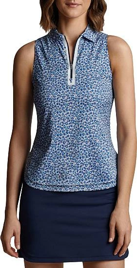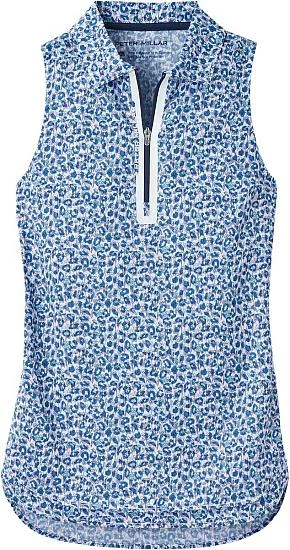 Peter Millar Women’s Carner Quarter-Zip Sleeveless Golf Shirts are constructed with 89% Polyester, 11% Spandex, quarter-zip construction, self collar, and floral print.Â