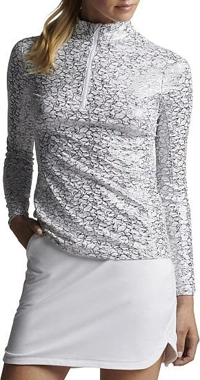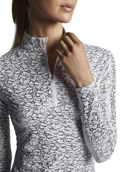 Peter Millar Women’s Lightweight Sun Golf Base Layers are constructed with 88% Polyester, 12% Spandex, quarter-zip opening, and novelty martinis print for added flair.