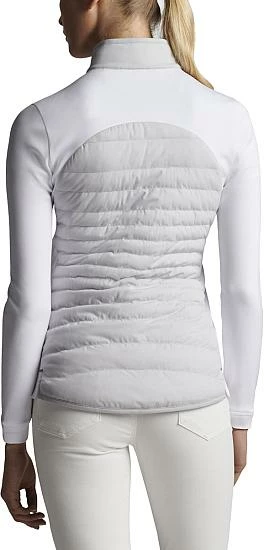 Peter Millar Women’s Merge Hybrid Full-Zip Golf Jackets are constrcuted with 100% Polyester shell, two-way zip closure, two side entry pockets, and an insulated interior.Â