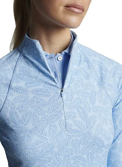 About Peter Millar Women’s Perth Raglan-Sleeve Quarter-Zip Golf Pullovers – Cottage Blue Palm Frond