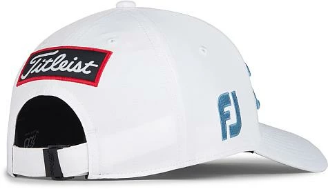 The right side of the hat features the FJ logo embroidered in the color of the Titleist lettering. The left side has the Pro V1 logo also in the color of the Titleist lettering. The back is embroidered with Titleist’s block logo on the closure.